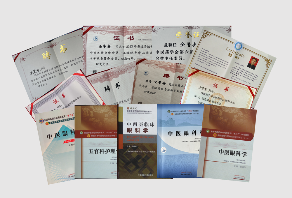 仝警安在中医眼科领域深稽博考、孜孜不倦,取得了丰硕科研成果。他发表学术论文40余篇,担任“十二五”“十三五”“十四五”规划教材《五官科护理学》,高等中医药院校西部精品教材《中西医临床眼科学》及《中国儿童青少年近视形成机制以及预测与防控》《儿童近视三岁抓起》等多部著作的副主编和编委,自编的教材《眼底检查》被作为陕西中医药大学研究生使用教材。主持科研课题4项,荣获陕西省科学技术奖三等奖1项。持续推进传统中医理论与现代眼科技术的结合研究,创新多项手术技巧,推动中西医眼科诊疗水平的整体提升。在眼科手术方面,熟练掌握了白内障超声乳化和玻璃体切割两项眼科核心技术,已完成4万余例手术;在鼻泪管植管手术中,创造性使用9号穿刺针制作引线针,采用抽吸法穿引线等改良技术,已完成500余台手术,在陕西省眼科界拥有较高的知名度。